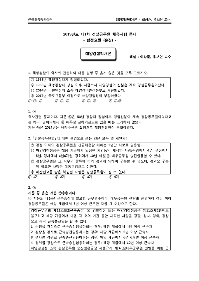 이상훈 / 우보연 교수님의 해양경찰학 해설을 첨부파일로 확인해주시길 바랍니다.