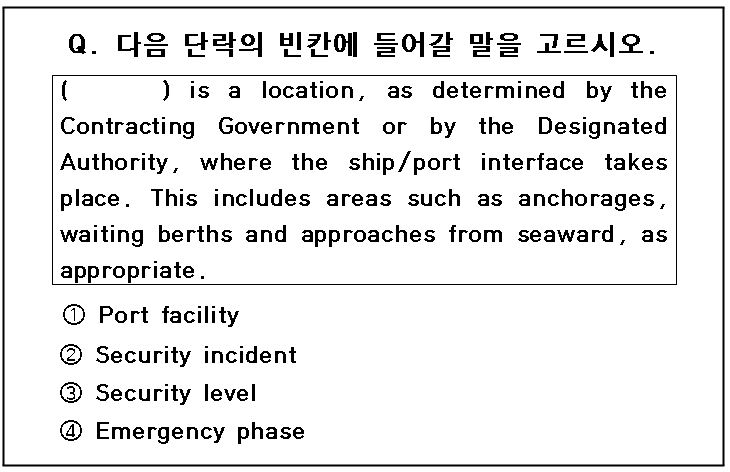 ※ 괄호 안에 들어갈 장소는 정부나 기관에 의해 결정되고, 선박 / 항구의 접점이 일어나며,