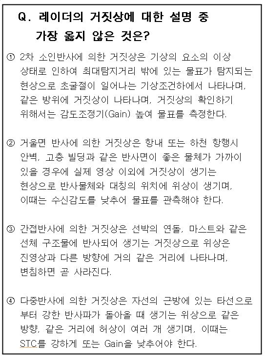2차 소인반사에 의한 거짓상은 거리선택스위치를 변경시켜 해결한다.