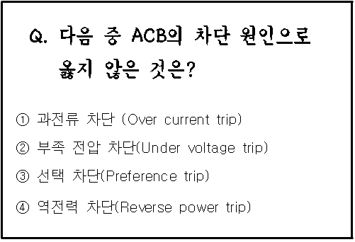 선택차단 스위치외 계전기가 작동하면 기중차단기(ACB)가 차단되어 발전기 보호