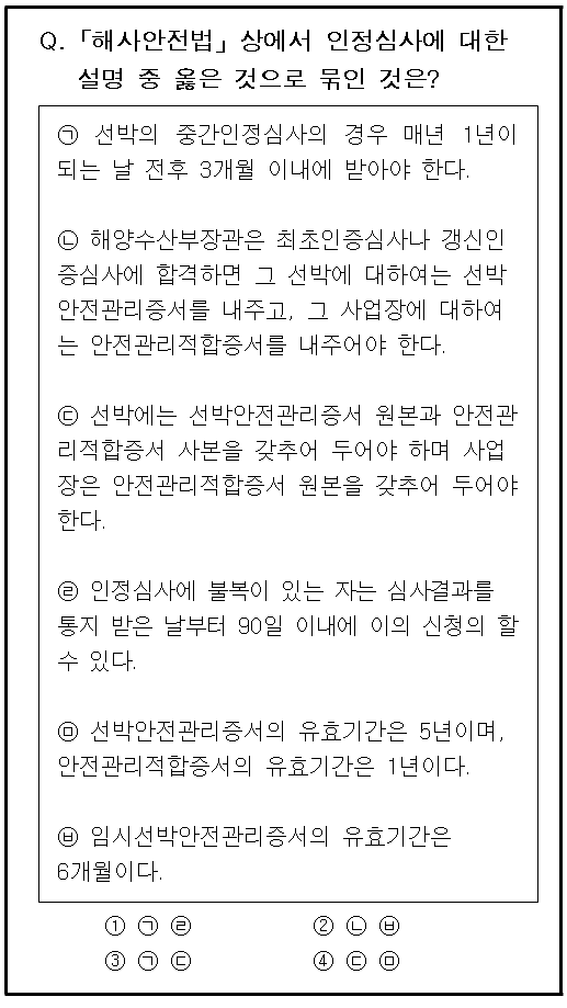 ㉤ 선박안전관리증서와 안전관리적합증서 모두 유효기간은 5년이다.