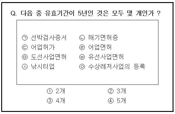 ► 5년 : 선박검사증서, 해기사면허, 어업허가