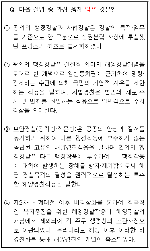 << 10월 9일 해양경찰학개론 일일모의고사 - 출제자 : 우보연 / 이상훈 강사님 >>