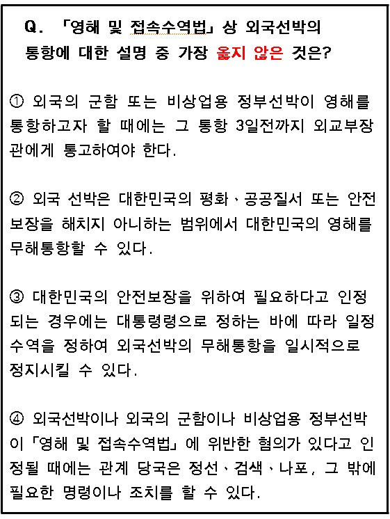 외국의 군함이나 비상업용 정부선박 또는 그 승무원이나 그 밖의 승선자가 이 법이나
