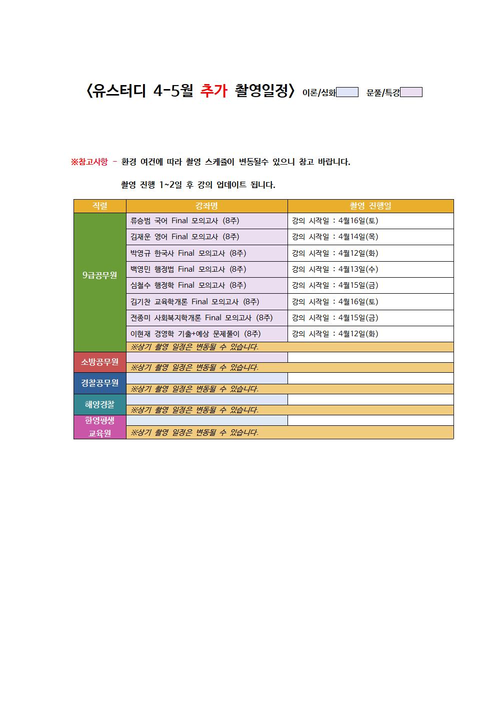 *유스터디 2022년 4-5월 신규 추가 촬영, 업그레이드 예정 과목입니다.
