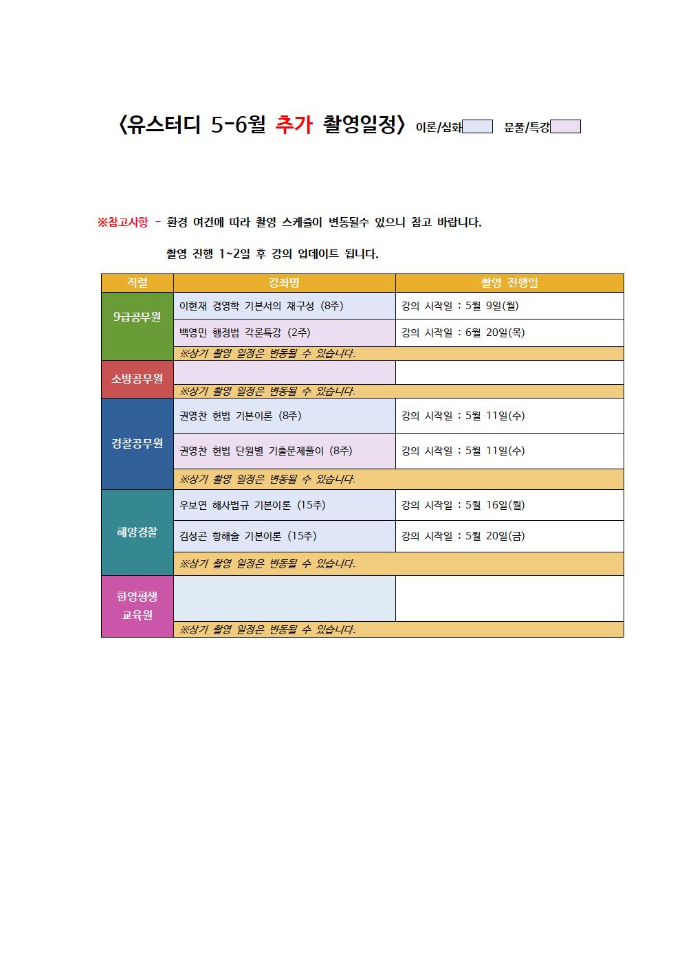 *유스터디 2022년 5-6월 신규 추가 촬영, 업그레이드 예정 과목입니다.