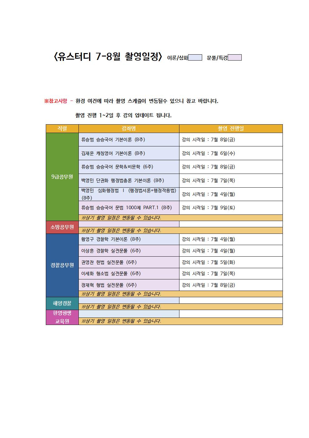 *유스터디 2022년 7-8월 신규 추가 촬영, 업그레이드 예정 과목입니다.