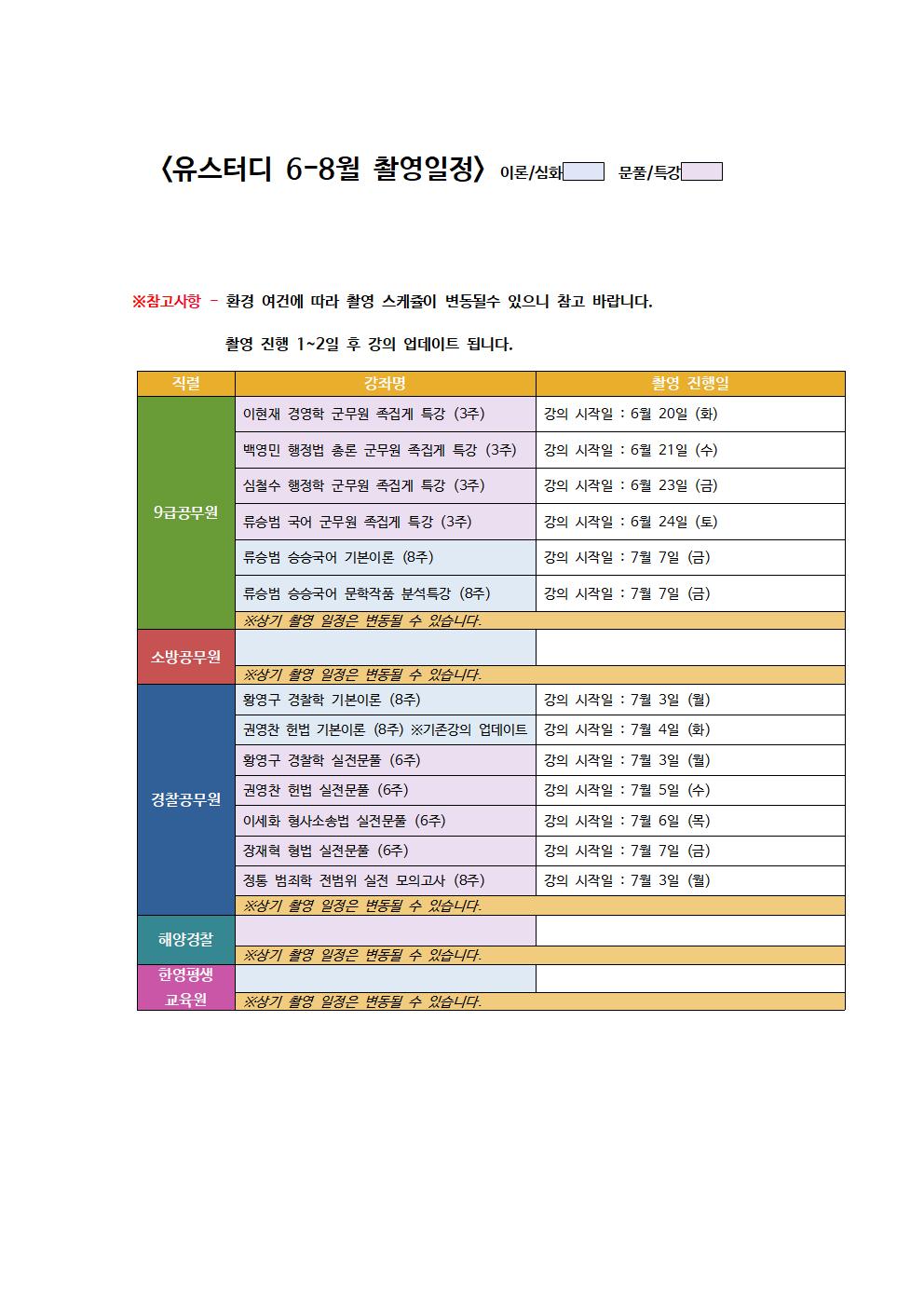 *유스터디 2023년 6-8월 신규 추가 촬영, 업그레이드 예정 과목입니다. (6/27 수정)