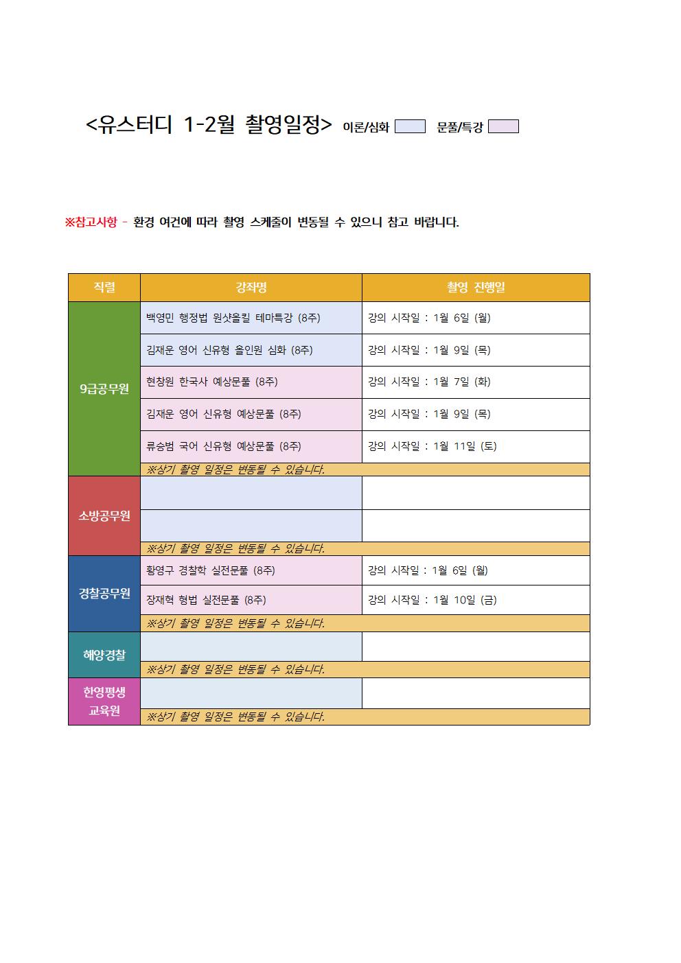 *유스터디 2025년 1-2월 신규 추가 촬영, 업그레이드 예정 과목입니다.