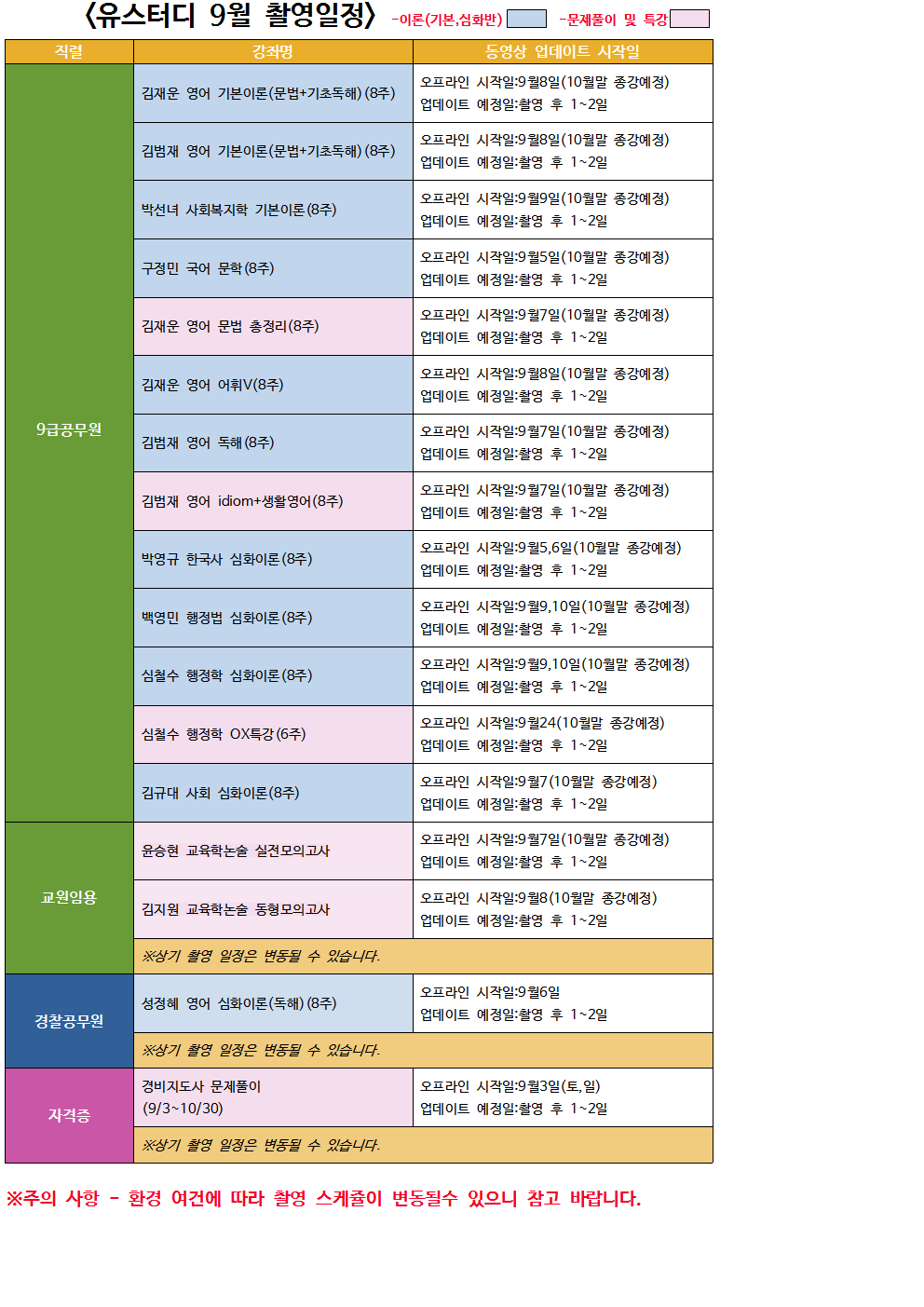 *유스터디 2016년 9월 신규 촬영, 업그레이드 예정 과목입니다.*