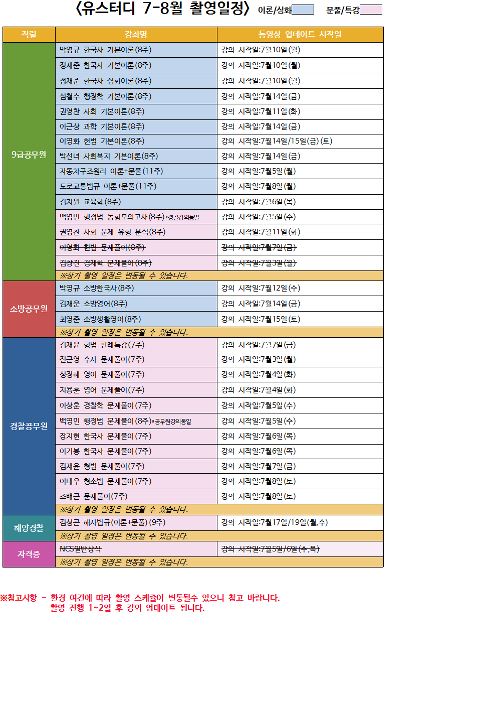 *유스터디 2017년 7-8월 신규 촬영, 업그레이드 예정 과목입니다.*