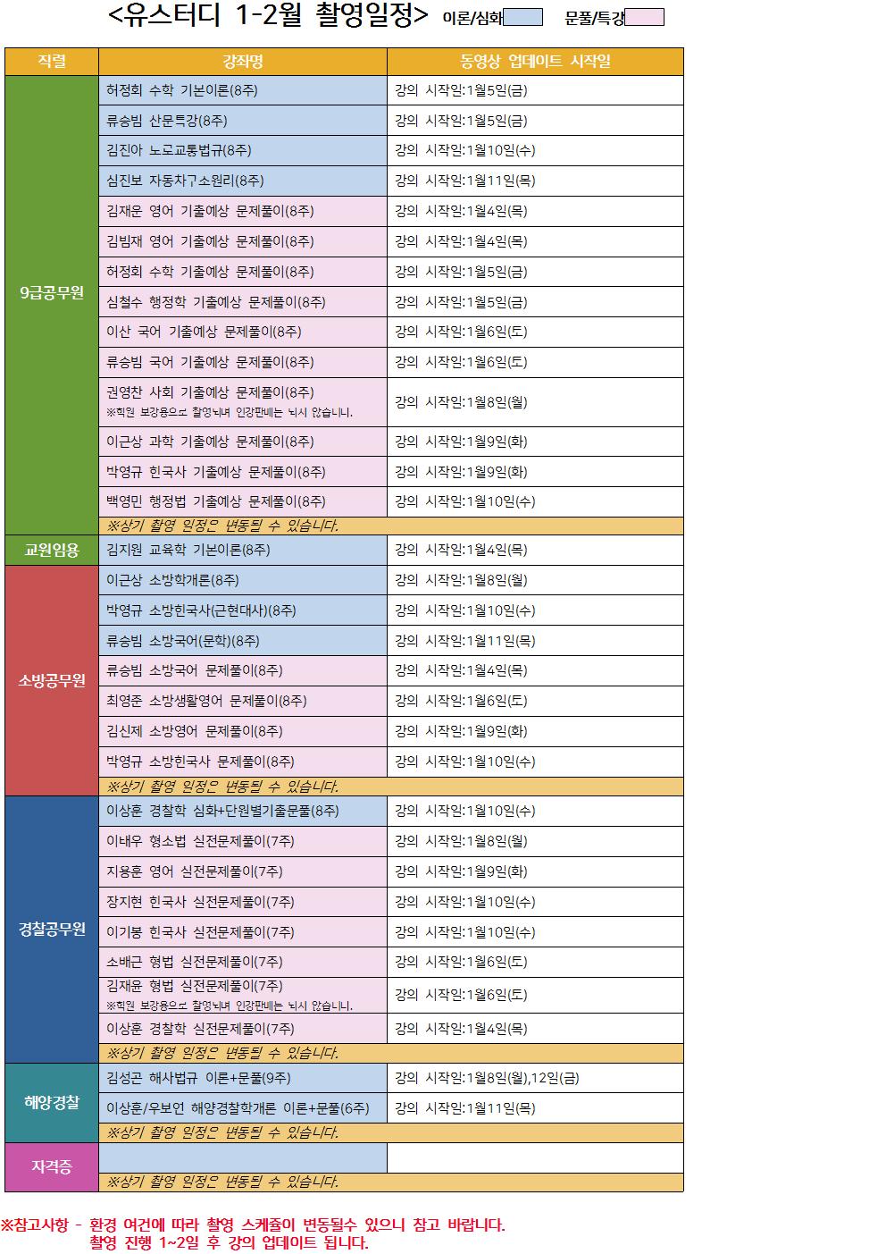 *유스터디 2018년 1-2월 신규 촬영, 업그레이드 예정 과목입니다.*