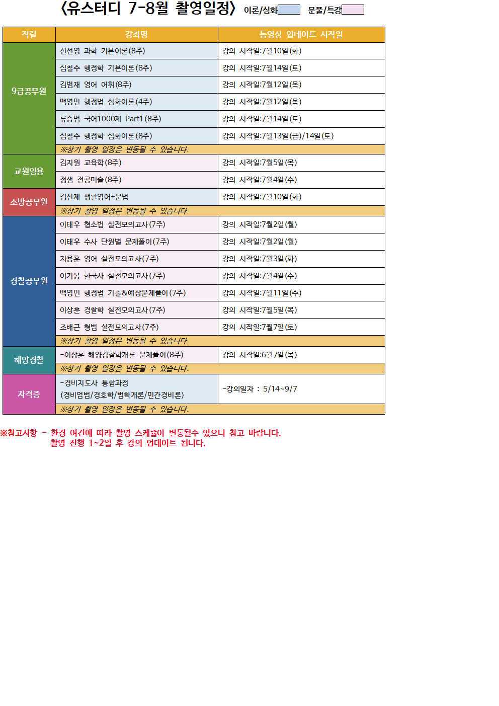 *유스터디 2018년 7-8월 신규 촬영, 업그레이드 예정 과목입니다.*