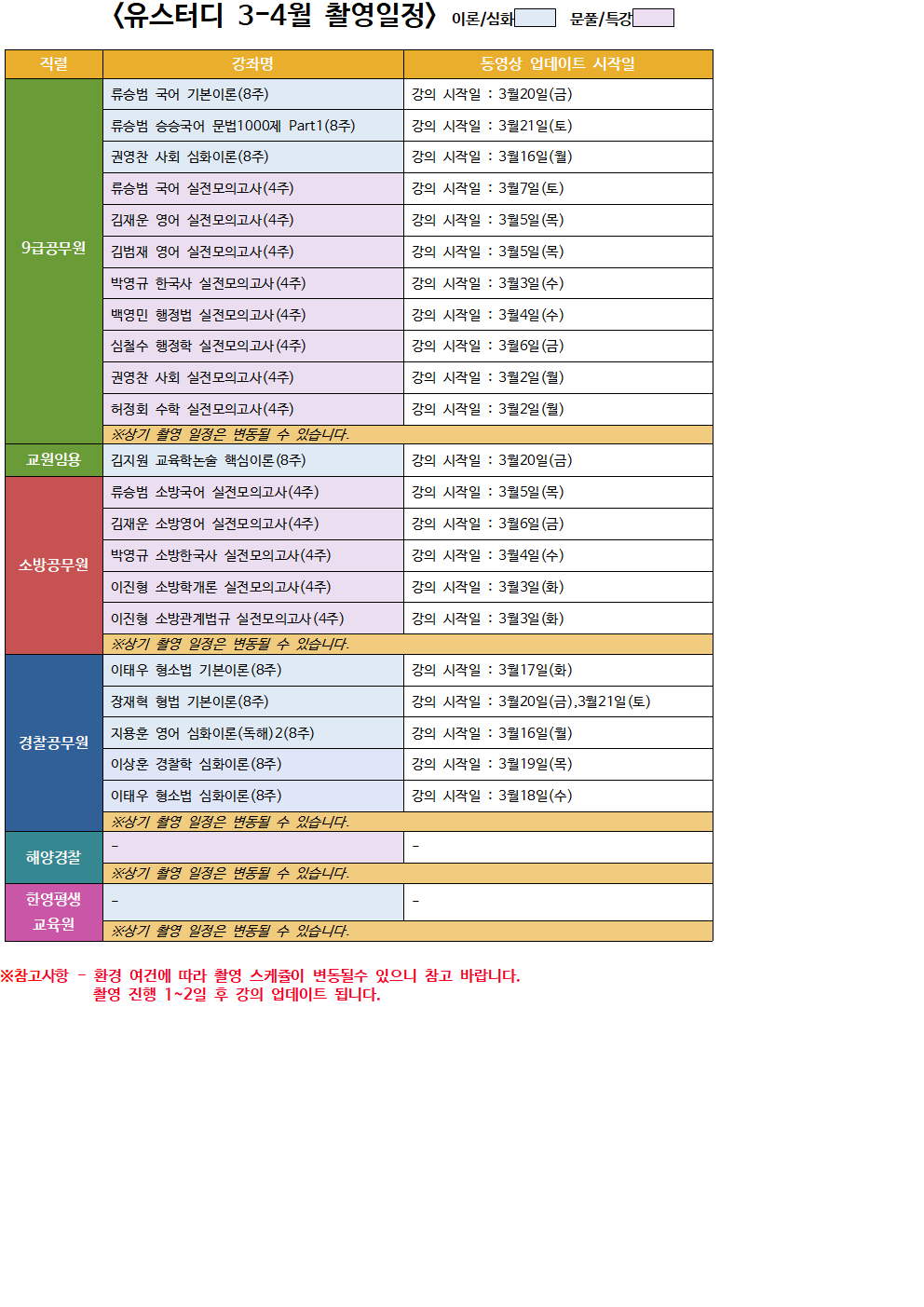 *유스터디 2020년 3-4월 신규 촬영, 업그레이드 예정 과목입니다.*