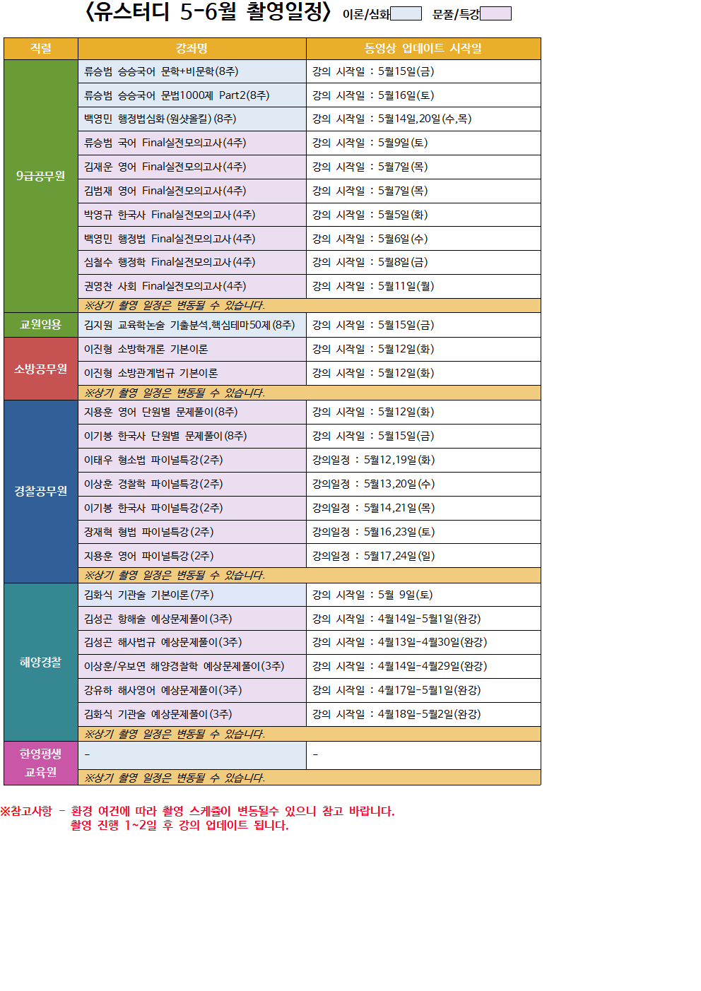 *유스터디 2020년 5-6월 신규 촬영, 업그레이드 예정 과목입니다.*