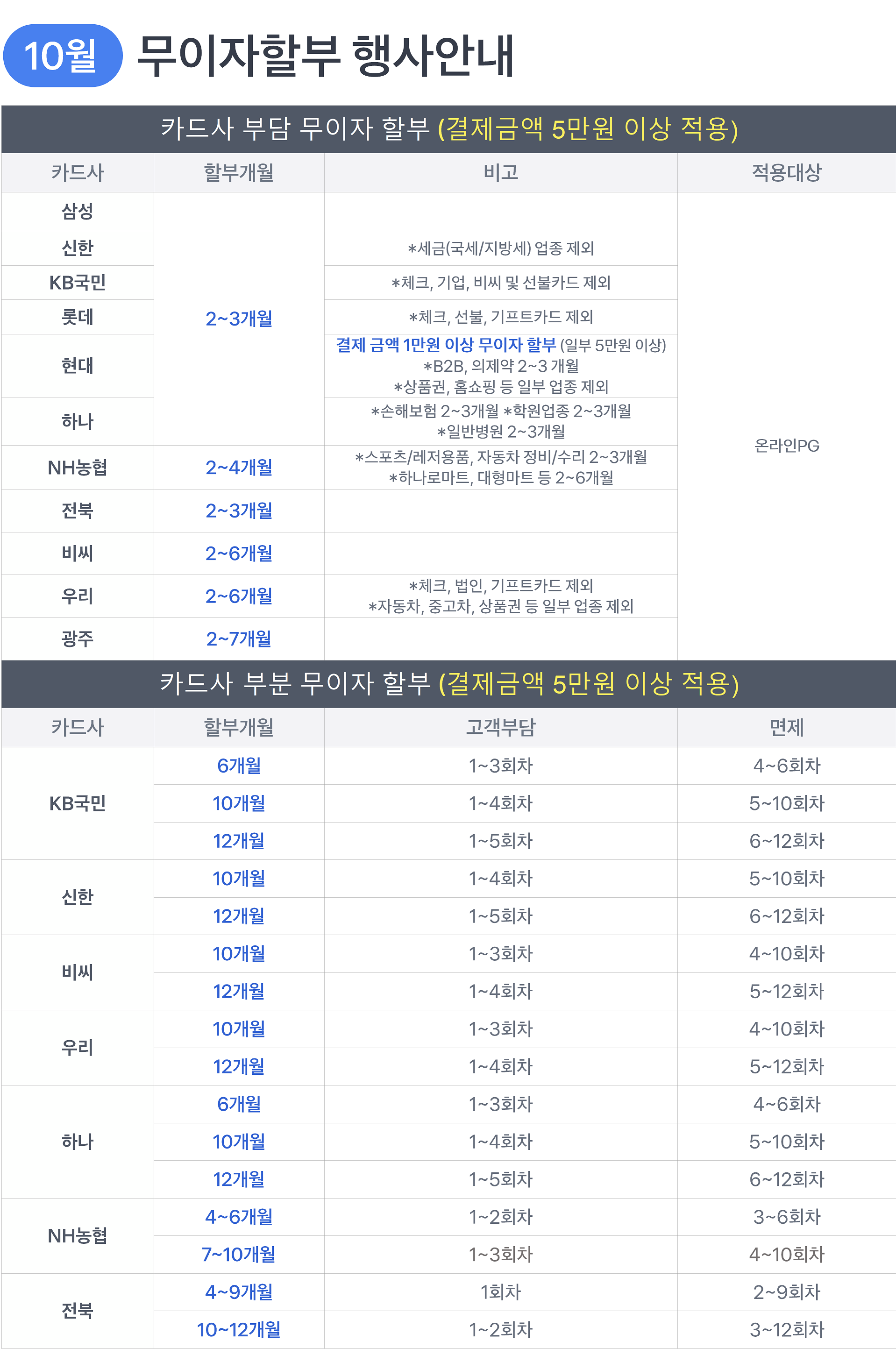 [이벤트]2023년10월 카드 무이자 할부 행사 안내