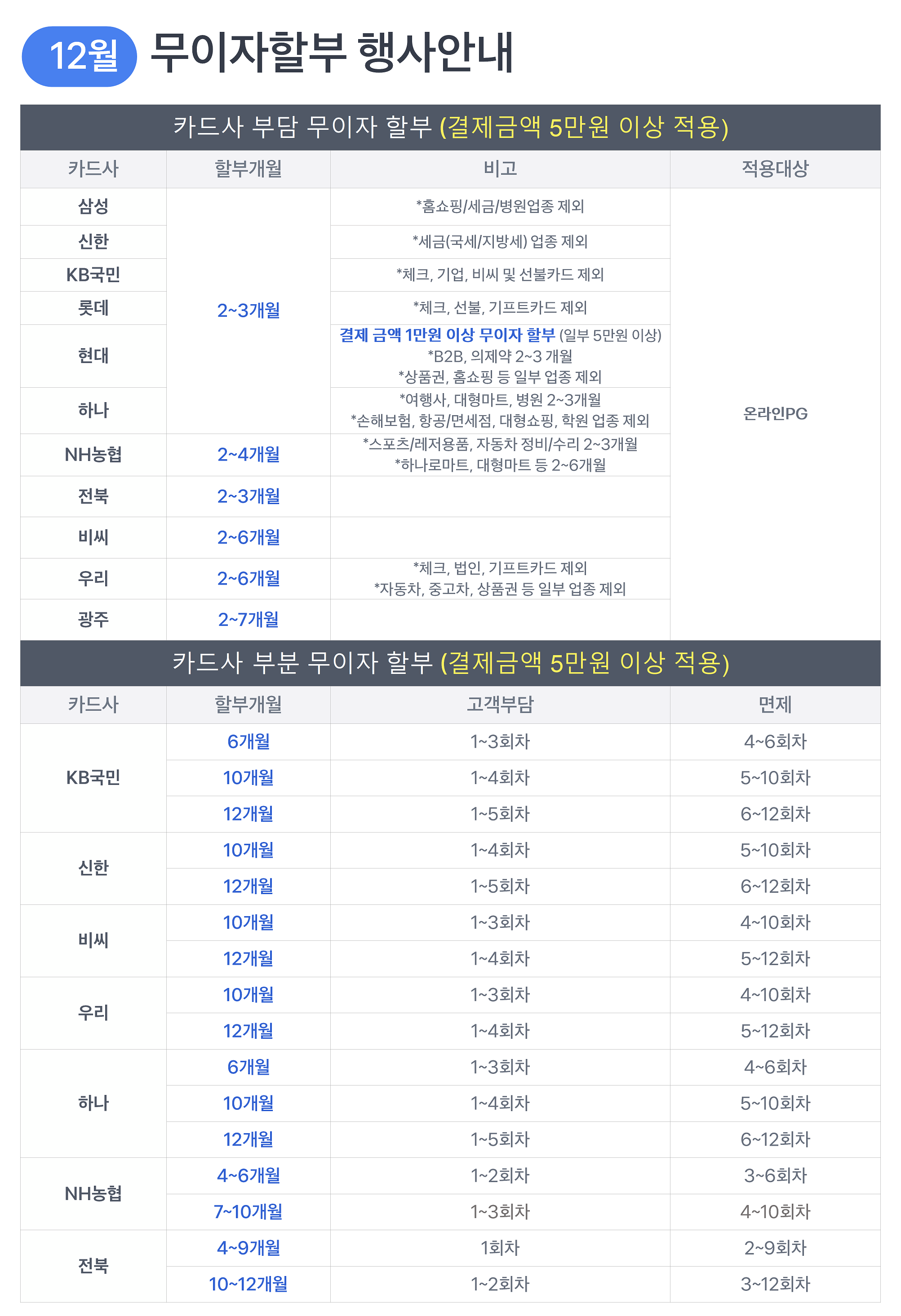 [이벤트]2023년12월 카드 무이자 할부 행사 안내