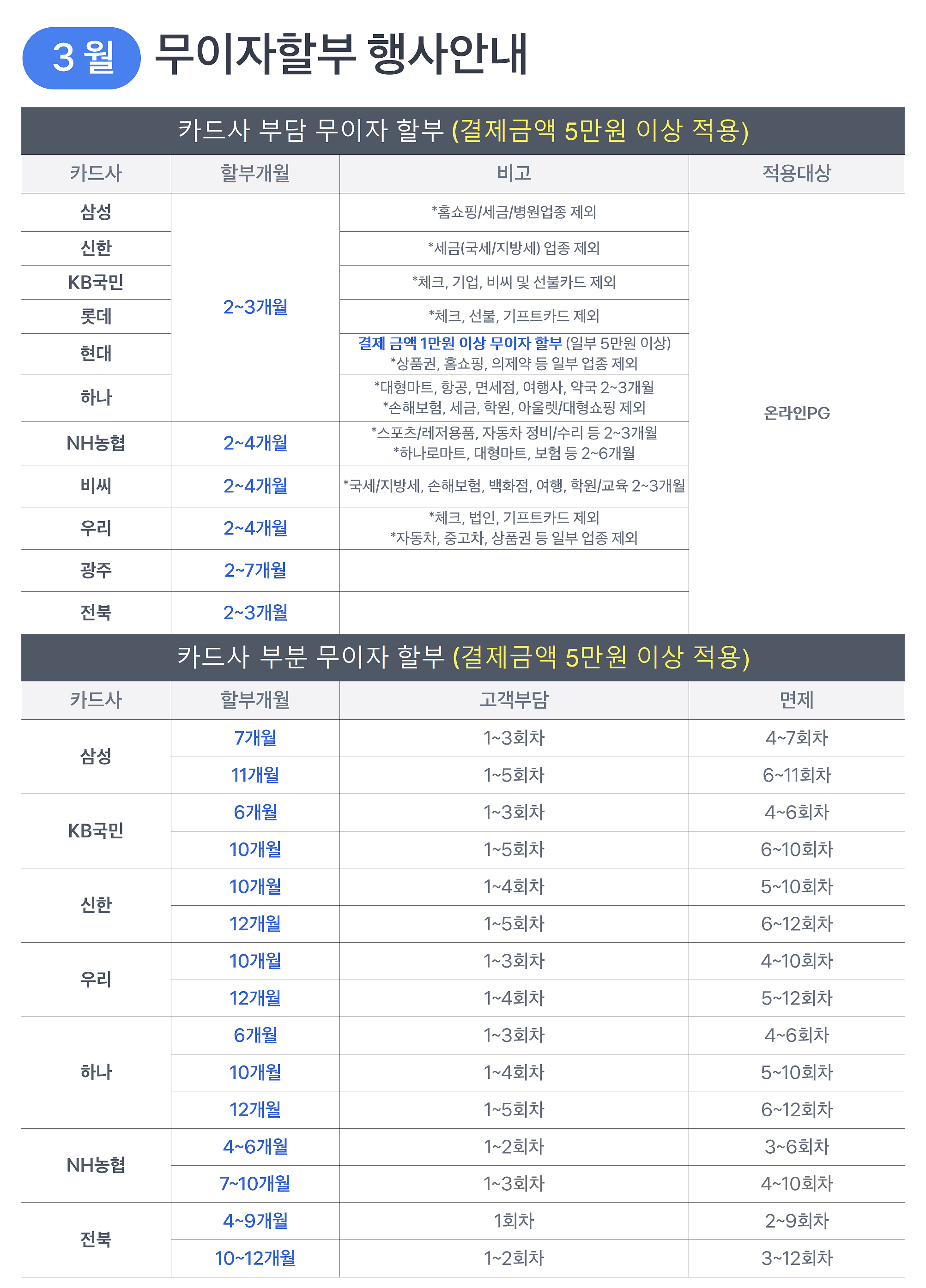 [이벤트]2024년3월 카드 무이자 할부 행사 안내