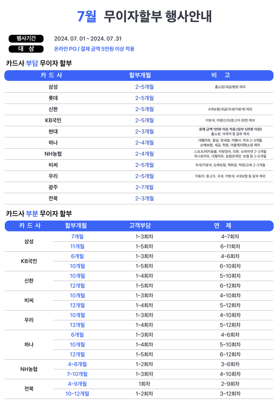 [이벤트]2024년7월 카드 무이자 할부 행사 안내