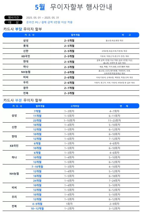 [이벤트]2025년 5월 카드 무이자 할부 행사 안내