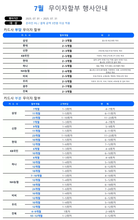[이벤트]2025년 7월 카드 무이자 할부 행사 안내
