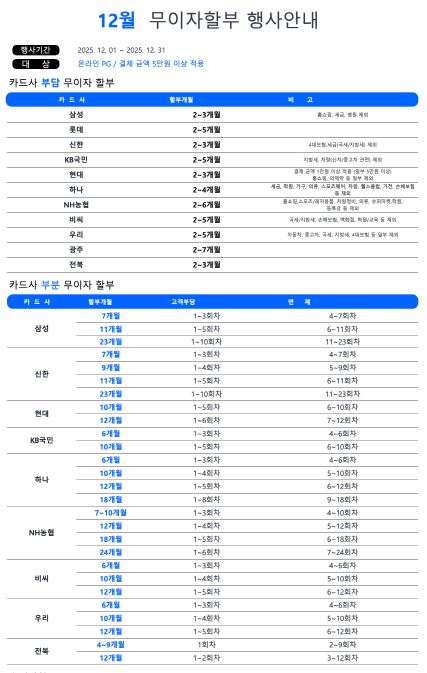 [이벤트]2025년 12월 카드 무이자 할부 행사 안내