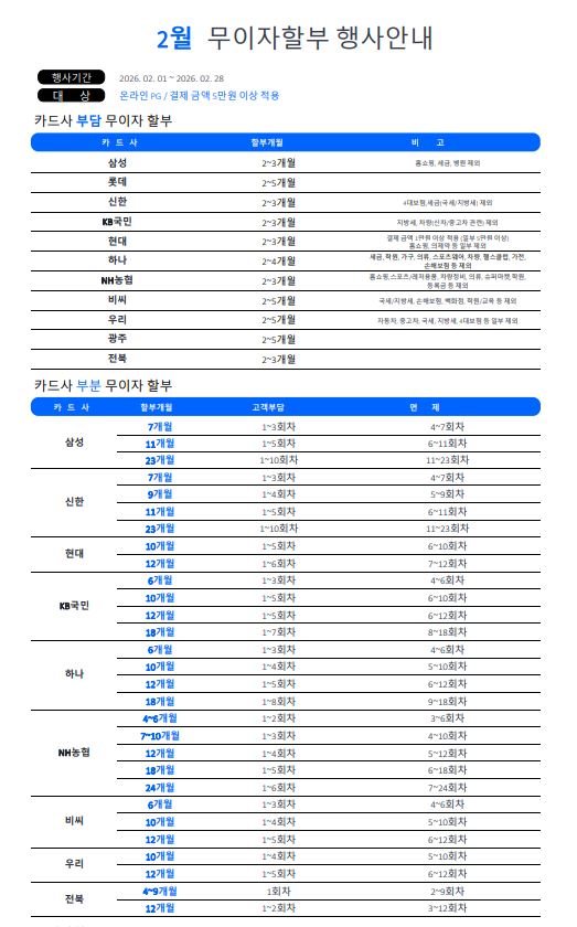 [이벤트]2026년 2월 카드 무이자 할부 행사 안내