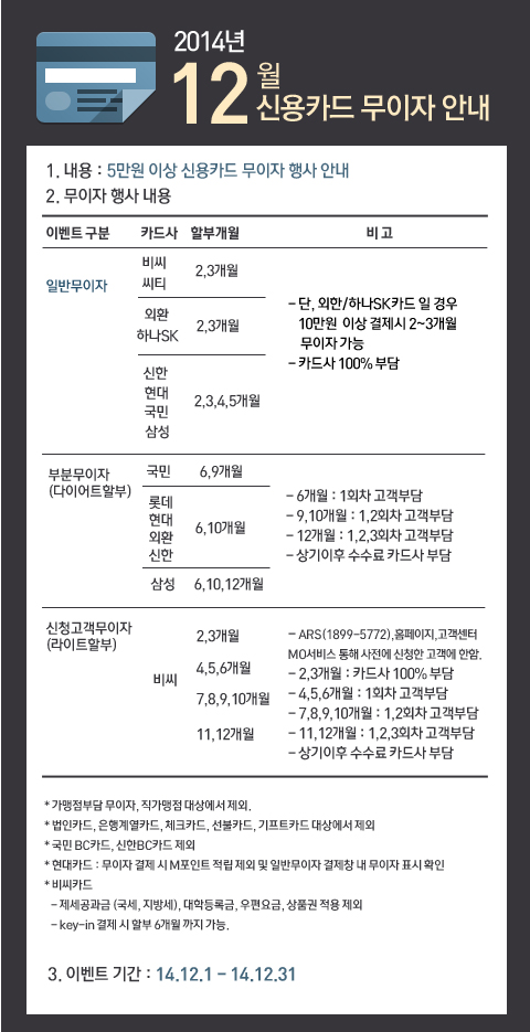 11월 유스터디 5만원 이상 결제시 적용되는 신용카드 무이자 (부분무이자) 할부 안내입니다.