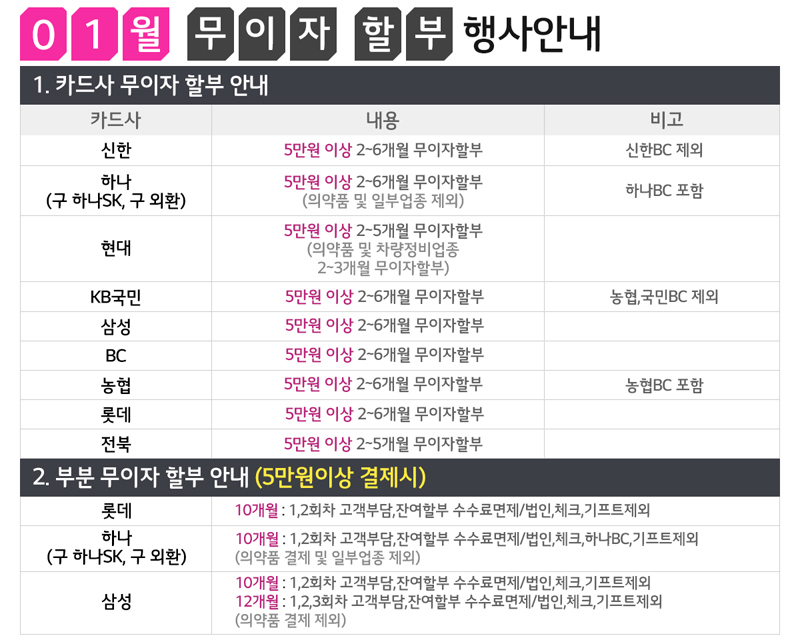 [이벤트]2018년1월 카드 무이자 할부 행사 안내