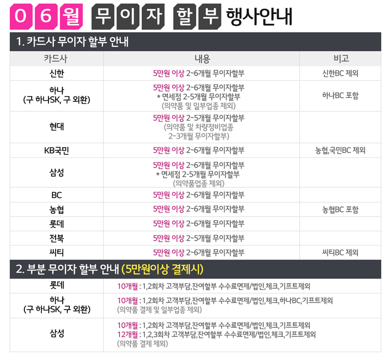 [이벤트]2018년6월 카드 무이자 할부 행사 안내