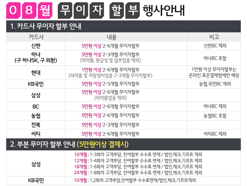 [이벤트]2019년8월 카드 무이자 할부 행사 안내
