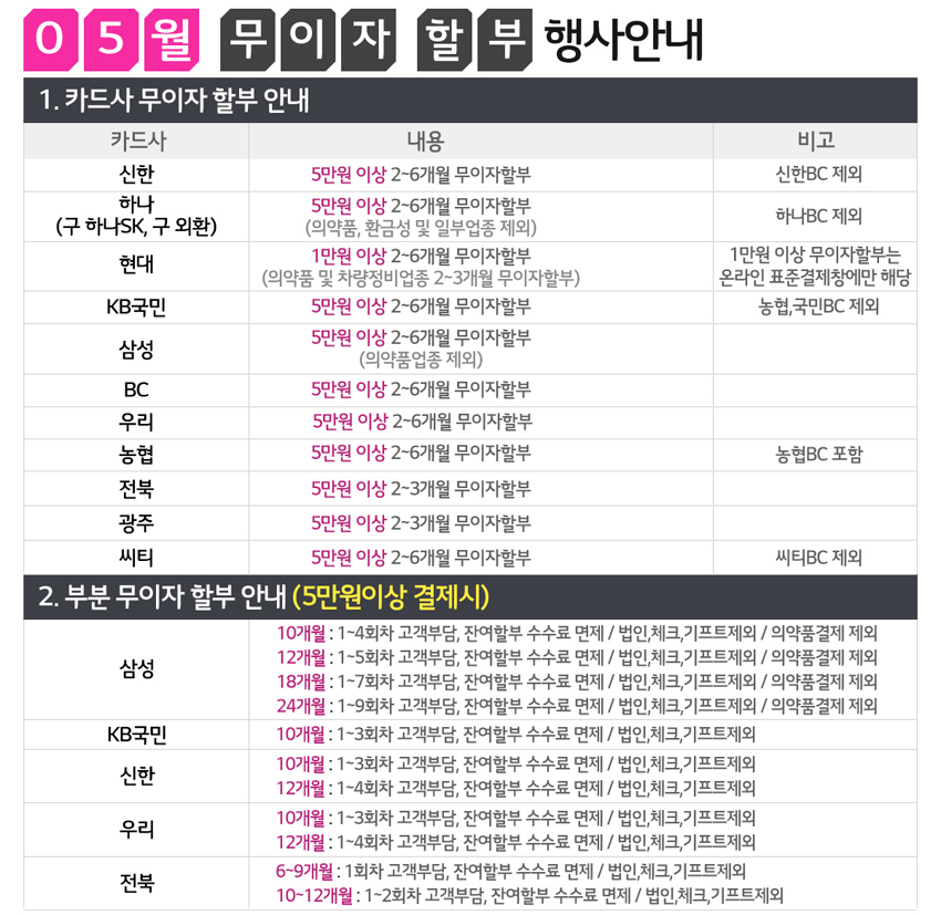 [이벤트]2020년5월 카드 무이자 할부 행사 안내