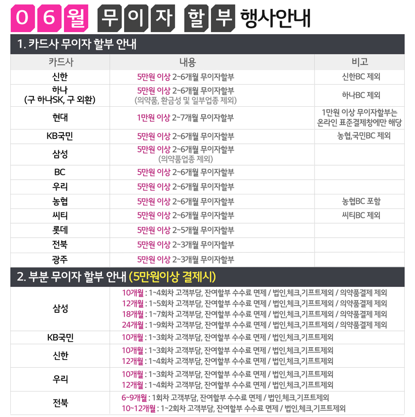 [이벤트]2020년6월 카드 무이자 할부 행사 안내