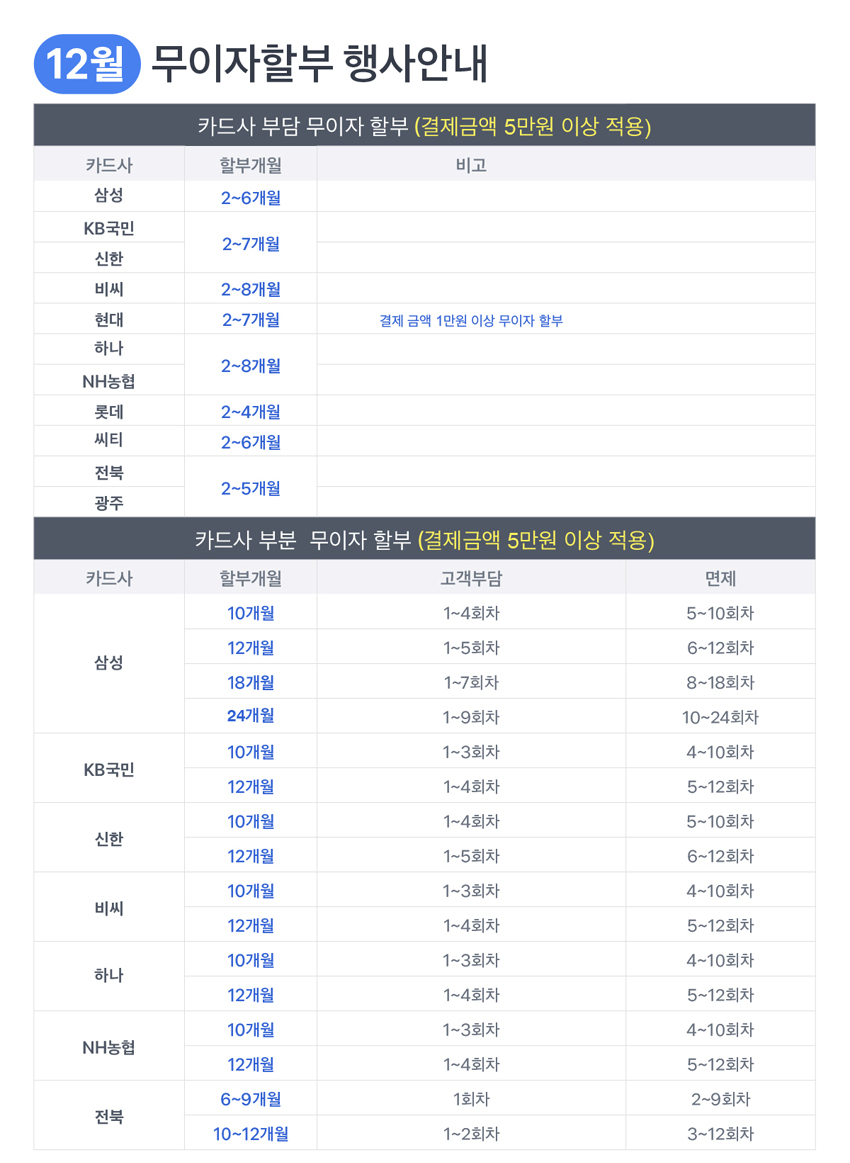 [이벤트]2021년12월 카드 무이자 할부 행사 안내