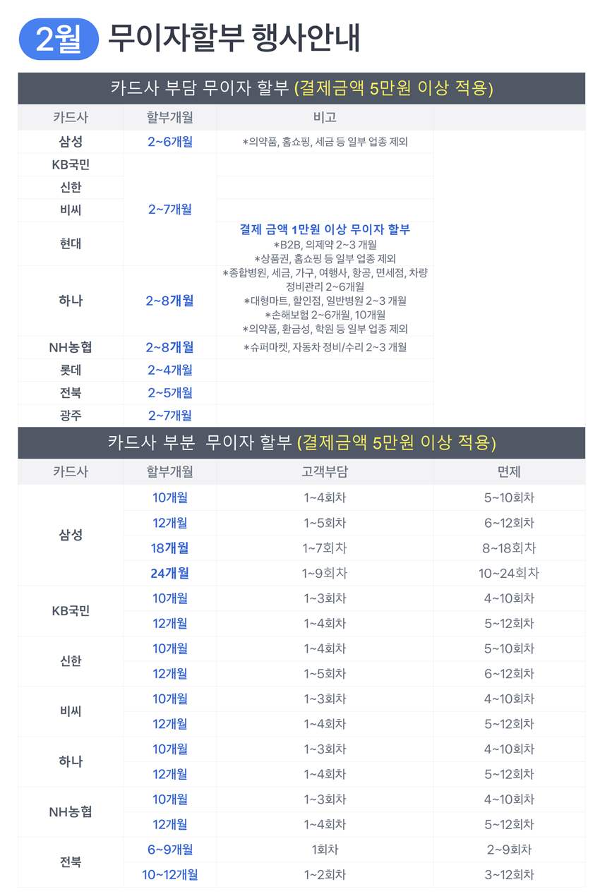 [이벤트]2022년2월 카드 무이자 할부 행사 안내