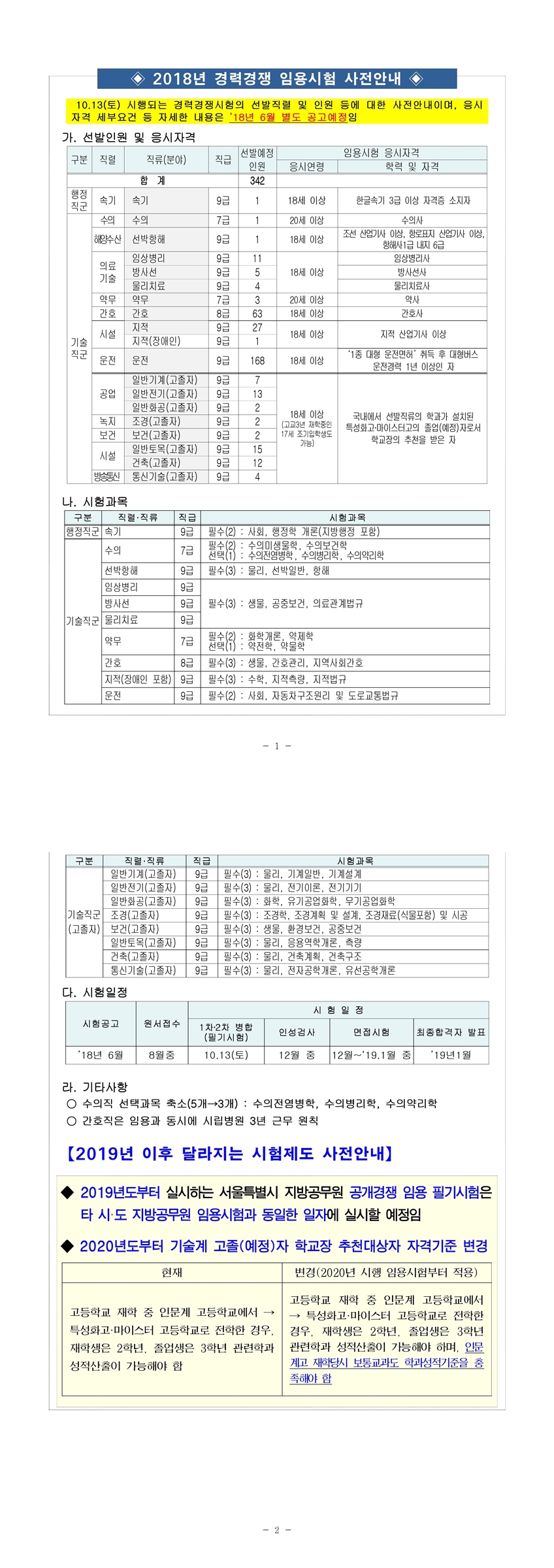 2018년 서울시 운전직 경력경쟁시험 공고 에 대해서 안내해드리고자 합니다.