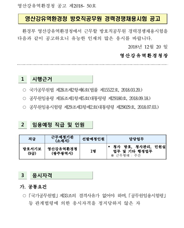 ▶ 영산강유역환경청 방호직공무원 경력경쟁채용시험 공고조회수 : 209