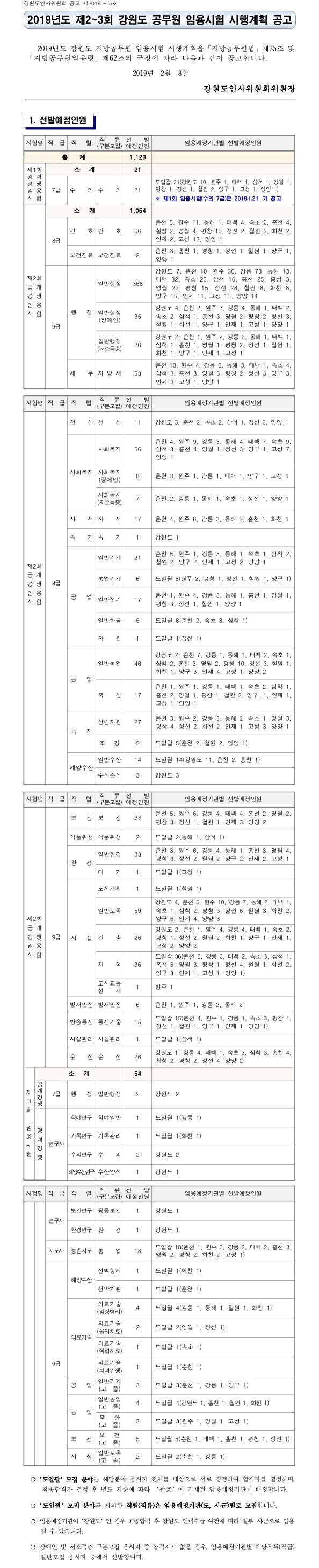 ▶ 2019 제2~3회 강원도 공무원 임용시험 시행계획 공고조회수 : 92