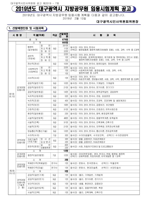 ▶ 2019 대구시 지방공무원 임용시험계획 공고조회수 : 144
