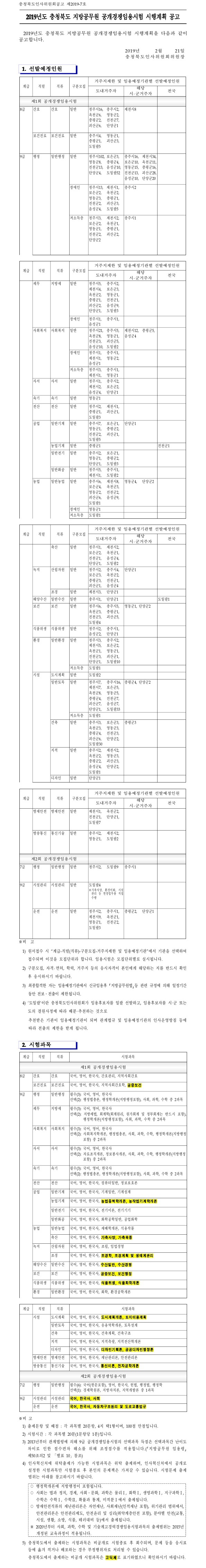 ▶ 2019 충북 지방공무원 공개경쟁임용시험 시행계획 공고조회수 : 268