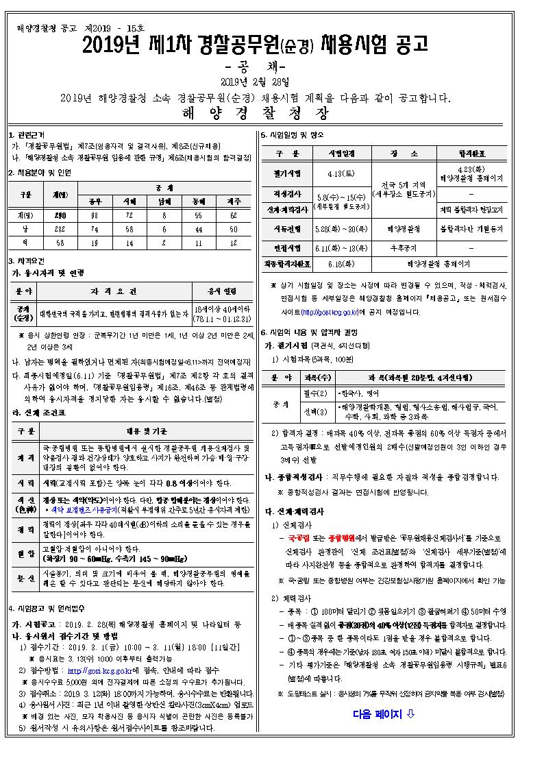 ★ 2019년 1차 해양경찰청 소속 경찰공무원 채용 공고 (특채, 공채)조회수 : 3,313