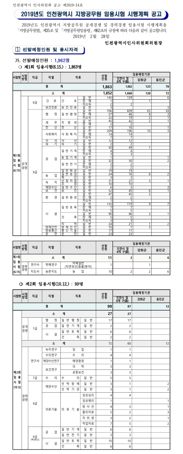 ▶ 2019 인천시 지방공무원 임용시험 시행계획 공고조회수 : 176