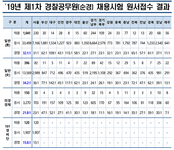 ▶ 2019 제1차 경찰공무원(순경) 채용시험 경쟁률조회수 : 292