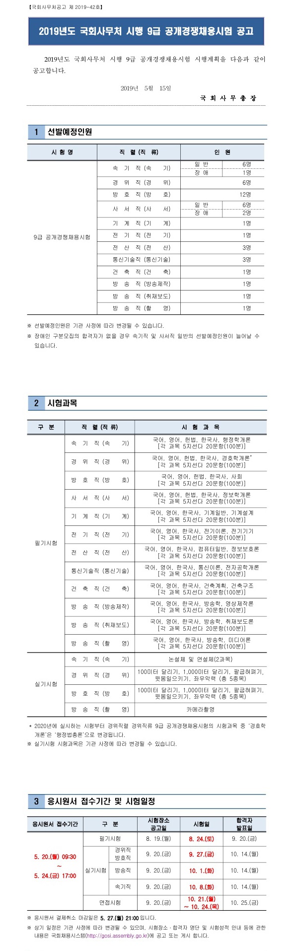 ▶ 2019 국회사무처 시행 9급 공개경쟁채용시험 공고조회수 : 479