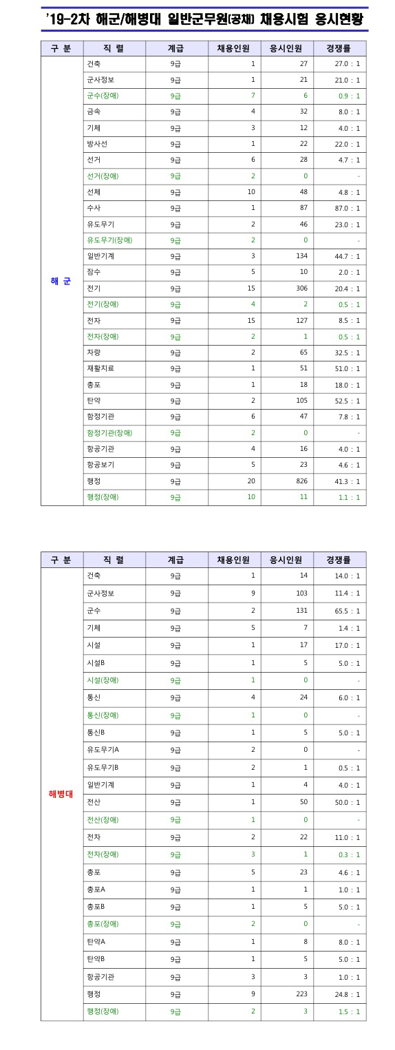 ▶ 2019년 2차 해군/해병대 일반군무원(공채) 채용시험 경쟁률