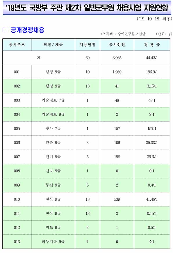 ▶ 2019 제2차 국방부 주관 일반군무원 채용시험 경쟁률