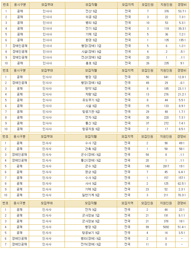 ▶ 2019 제2차 육군 일반군무원 공개경쟁채용시험 경쟁률