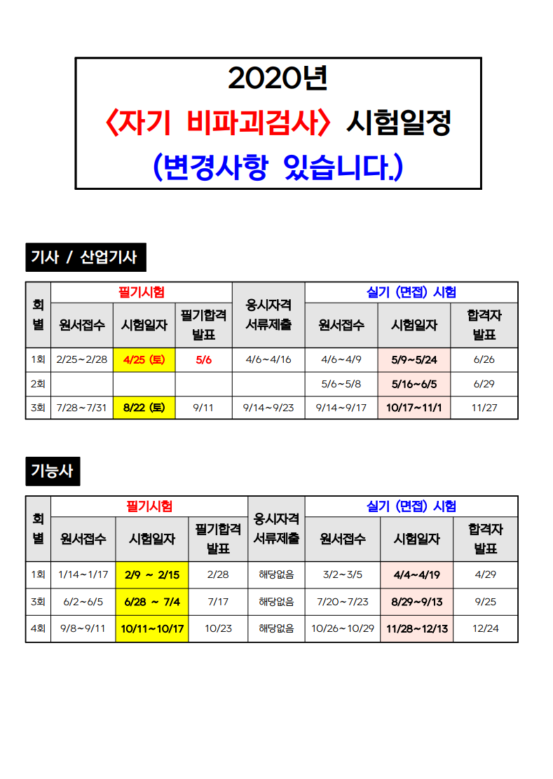 2020 자기 비파괴검사 시험일정 (필기 / 실기) ※일정수정