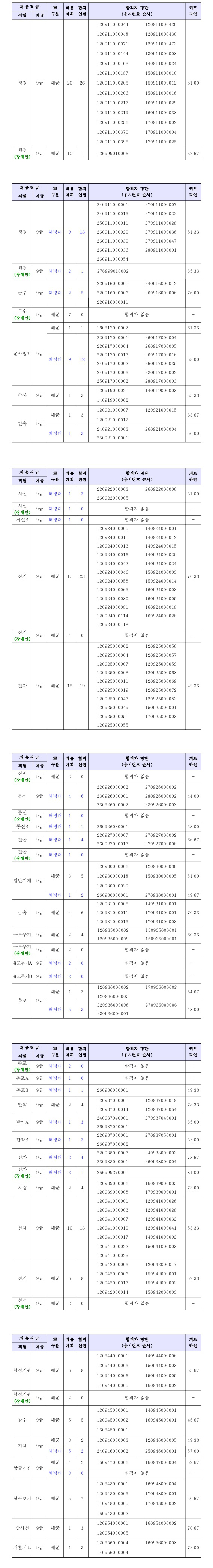 ▶ 2019 제2차 해군/해병대 군무원 채용 필기시험 합격선