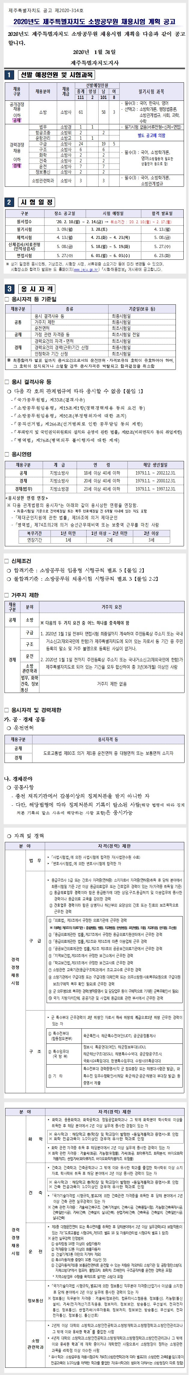 ▶ 2020 제주도 소방공무원 채용시험 계획 공고
